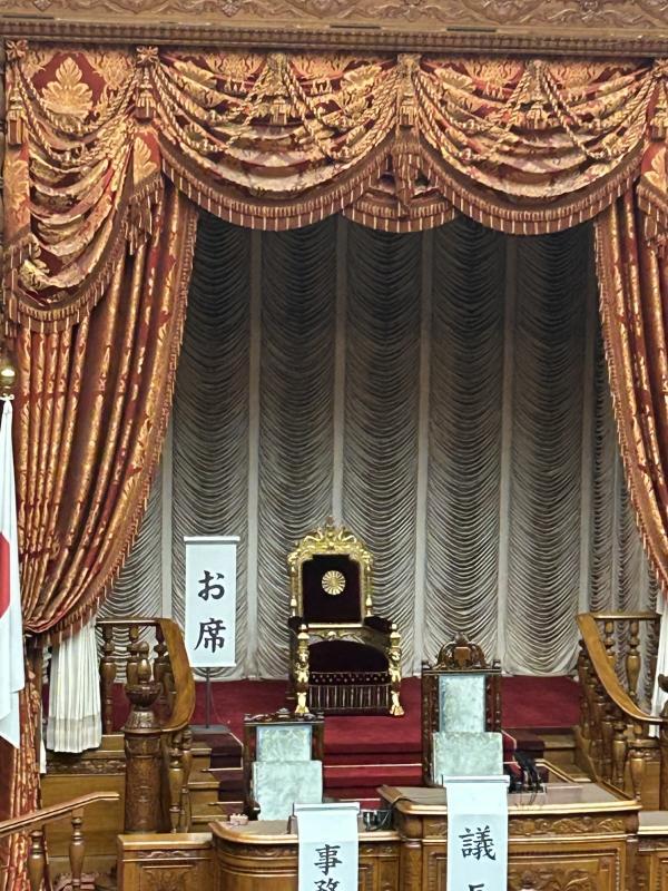 天皇陛下のお席。 菊花紋がまぶしいです_(._.)_