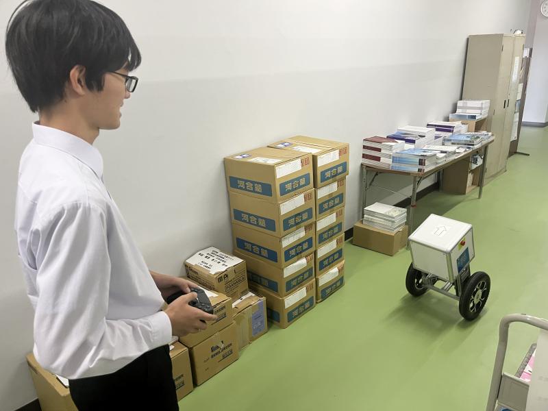 ☺生徒は親近楽学。数学・物理・ロボットと…探究! おそろおそる操作。費用がほとんどかかっていないうえに、正確に動く