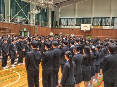また、6時限目には対面式が実施されました。中学・高校の2・3年生が体育館で新入生の入場を待つ中、やや緊張した新入生が入場し、大きな拍手に包まれて温かく迎え入れられました。式では、生徒会による歓迎の挨拶や新入生代表の初々しい挨拶が行われ、さらに爲櫻應援団による力強いエールが会場に響き渡りました。その一つ一つが新入生の背中を押し、これから始まる学校生活への期待と決意を高めるものとなりました。