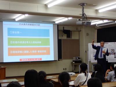 その後、今年度も本校の研修を支えてくださいます(株)アイエスエイ高崎支社の登坂さん、バレスターさんより、サポート体制や海外研修の意義についてお話いただきました。本校生の研修に対する熱意を非常に高く評価してくださり、いつも最善を尽くしてくださるアイエスエイさんのサポートは大変心強いです。