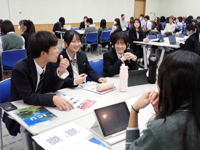 最初は少し緊張していましたが、すぐに打ち解けて積極的に議論に関わっている姿が頼もしいです。その後、グループごとにまとめたものを発表し、全体で様々な考えを共有しました。