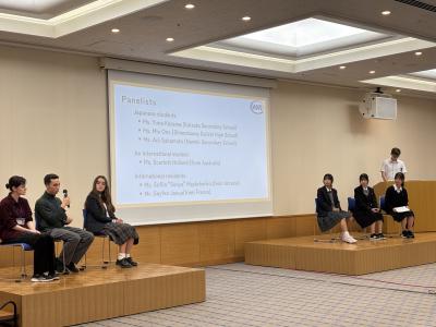 その後、勝田中等教育学校の留学経験者の発表を聞き、最後はパネルディスカッションです。留学生や在留外国人の方々と、多文化共生のために自分たちに何ができるかを議論しました。