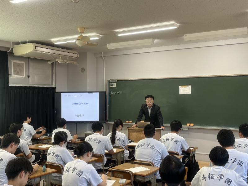 化学の構造式に触れながら、有機合成化学についてご説明いただきました。