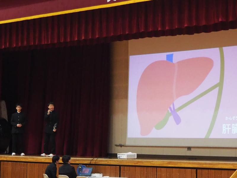 総勢200組の探究活動から投票によって選ばれた、2年生の上位4組、1年生の上位2組が、スライドを用いたプレゼンテーション形式で研究成果を発表しました。